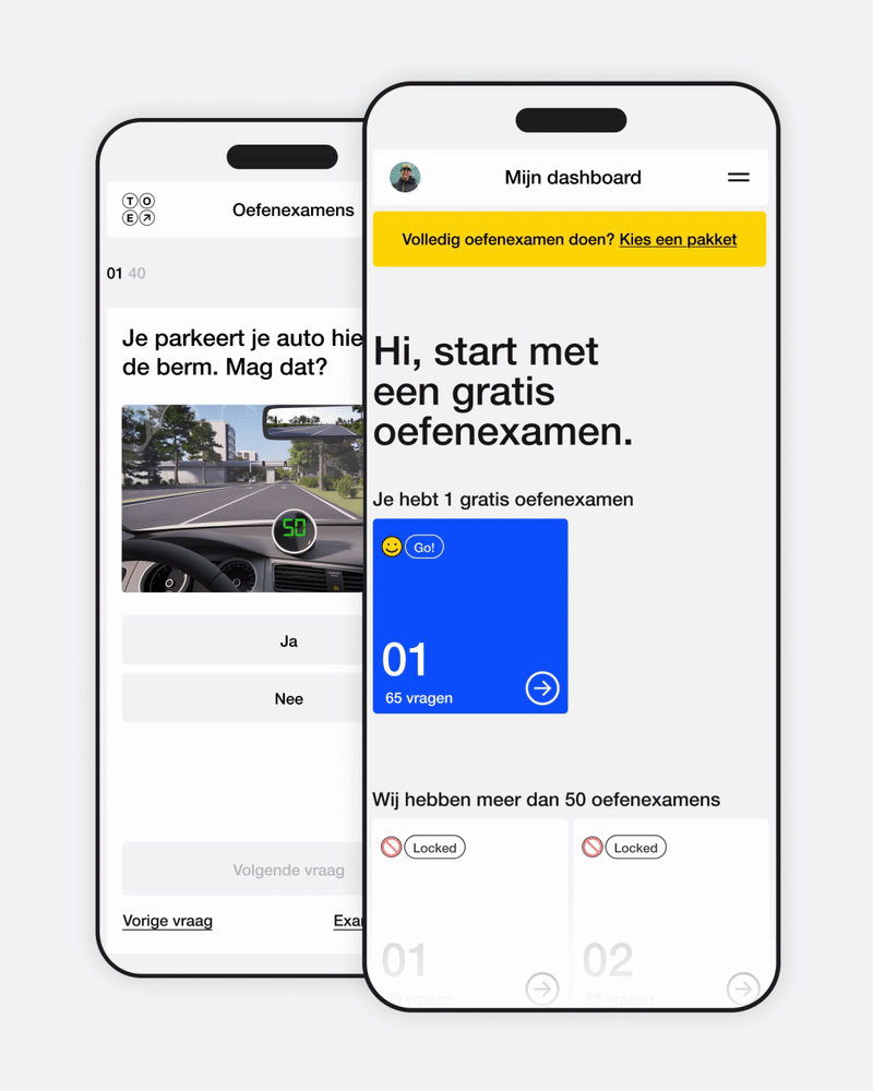 Met onze oefentheorie-examens ben je niet alleen goed voorbereid, maar ook vol zelfvertrouwen om het echte examen succesvol af te ronden. Oefen in je eigen tempo en zorg dat je zonder verrassingen kunt knallen tijdens het theorie-examen. Begin vandaag nog en zet de eerste stap richting je rijbewijs!